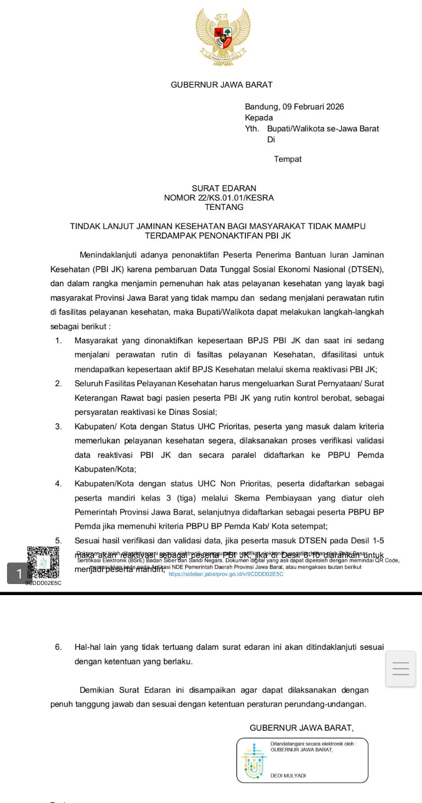 Cariumulya, 10 Februari 2026 - Pemprov Jabar merilis surat edaran (SE) Nomor 22/KS.01.01/KESRA tentang tindaklanjut j...